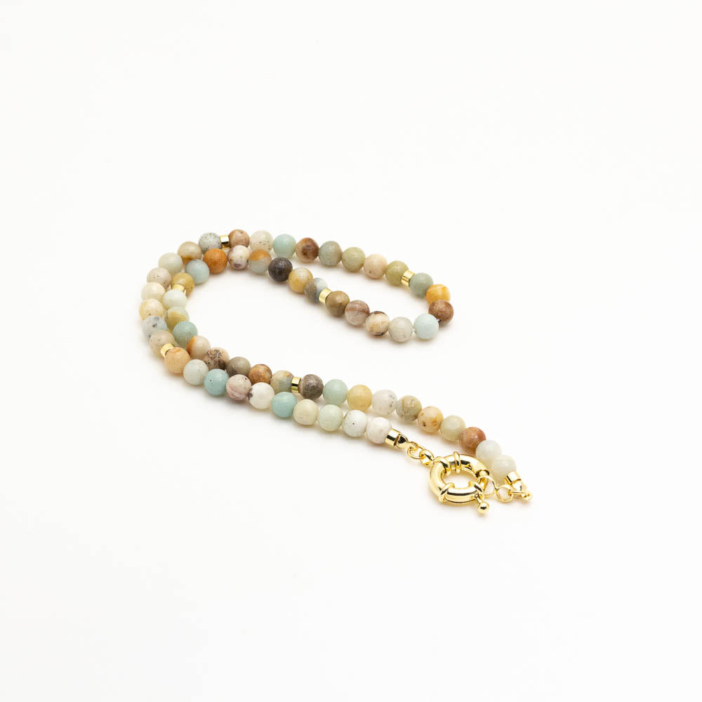 Collar baño de oro, confeccionado con piedras naturales, mide 40 cm y con broche timón.
