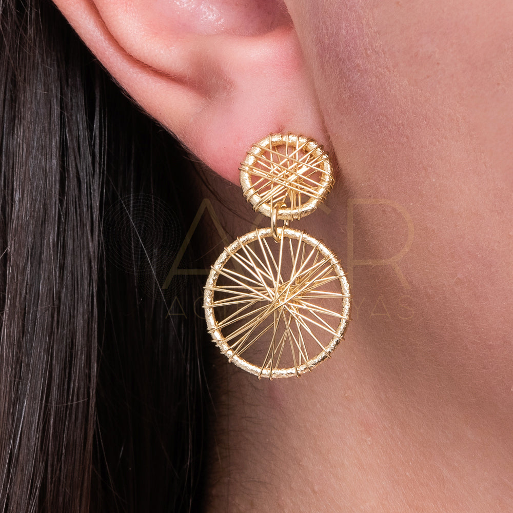 Aro baño de oro, modelo redondo con alambrismo, en este modelo se mezclan las dos texturas, satinado y brillante, tamaño mediano.